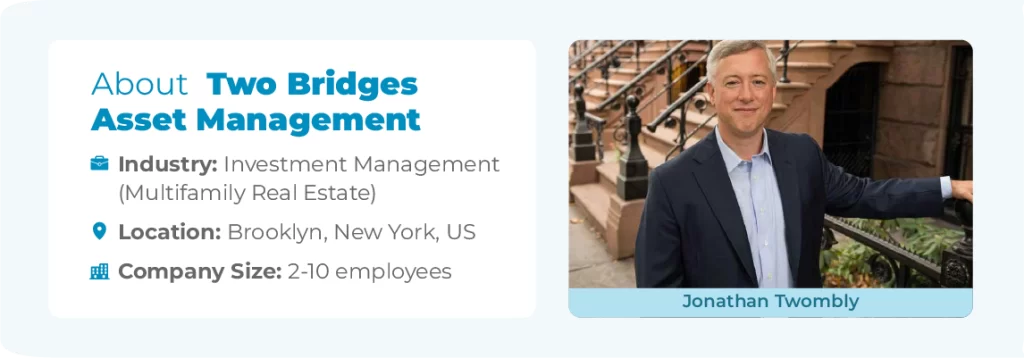 Two Bridges Asset Management invests in multifamily residential properties across the Southeastern United States on behalf of private investors. The firm manages acquisitions, investor relations, and operations with a small, focused team where efficiency and reliability are critical.